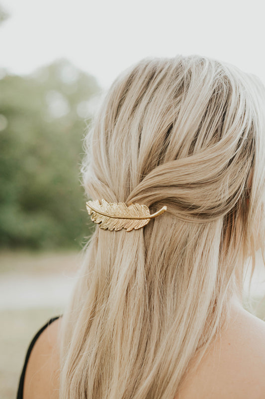 Feather laurel leaf Hair Clip Gold Silver | Bohemian Spiritual Hair Clip | Adult Teen Hair Accessory Elegant Trendy Metal Hair Barette